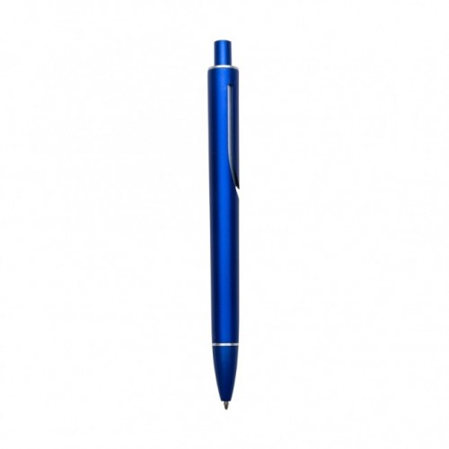 Descrição: Caneta plástica inteira colorida com detalhes prata. Clip "acoplado" ao corpo da caneta, possui anel superior e inferior prata. Aciona por clique.