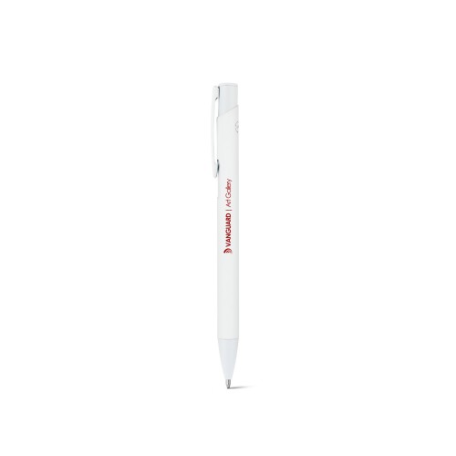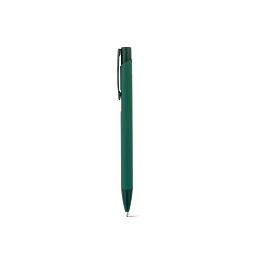 Esferográfica em alumínio 100% reciclado, com acabamento em borracha. Escrita em azul até 1,5 km. ø10 x 136 mm