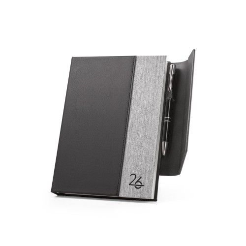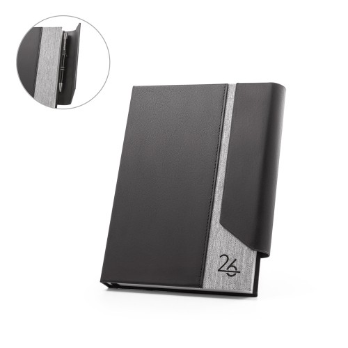 Agenda A5 em PU (58% reciclado) e PET reciclado (100% rPET) 300D com fecho magnético.