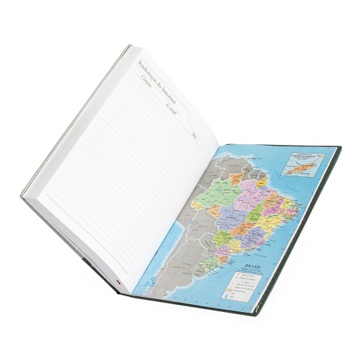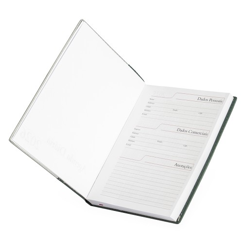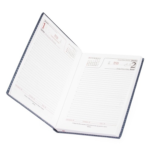 Descrição: Agenda diária 2026 de couro sintético. Contém fita de cetim marca página, dados pessoais, calendário de 2025 à 2027, mapa do Brasil, mapa global, índice telefônico e planejamento. OBS.: PEDIDOS APENAS MÚLTIPLOS DE 10 PEÇAS! Altura : 20 cm Largura : 14,5 cm Medidas aproximadas para gravação (CxL): 19 cm x 10,5 cm Peso aproximado (g): 374
